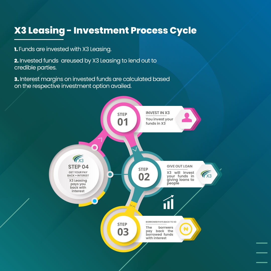 X3 Leasing Limited is a consumer finance firm offering diversified loan and investment solutions for businesses, organizations, and individuals. Our primary objective is to make the process of borrowing money convenient, secure, and transparent. From small business loans to salary advances, we provide easy loans in Nigeria with benefits of instant disbursements, minimal interest rates, and round-the-clock customer support.
